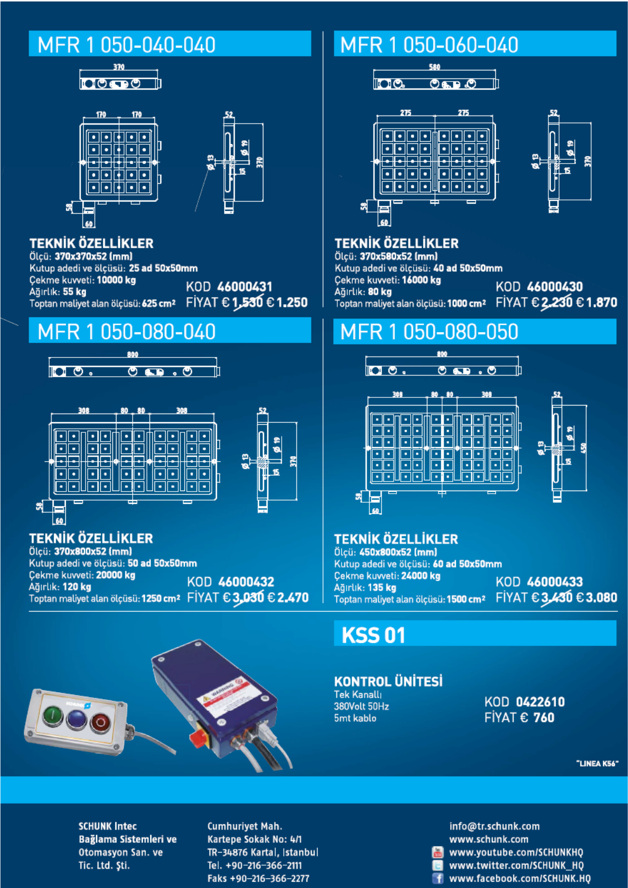 Schunk MAGNOS Kare Kutuplu Elektro-Permanent Manyetik Tabla